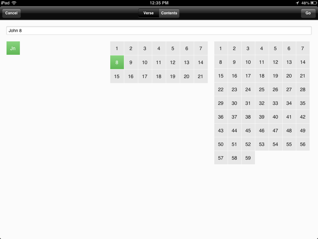Navigating through the commentary page-by-page is fairly intuitive, though not perfect. You can swipe to “turn” the page, a concept which is strange on a device (we are more used to scrolling through Web pages). You can also scroll through a commentary by two-finger swiping/scrolling up or down. It’s line-by-line scrolling that you get, not continuous or smooth, so I hope this is a feature that is improved. (Accordance’s iOS app has smooth scrolling.)