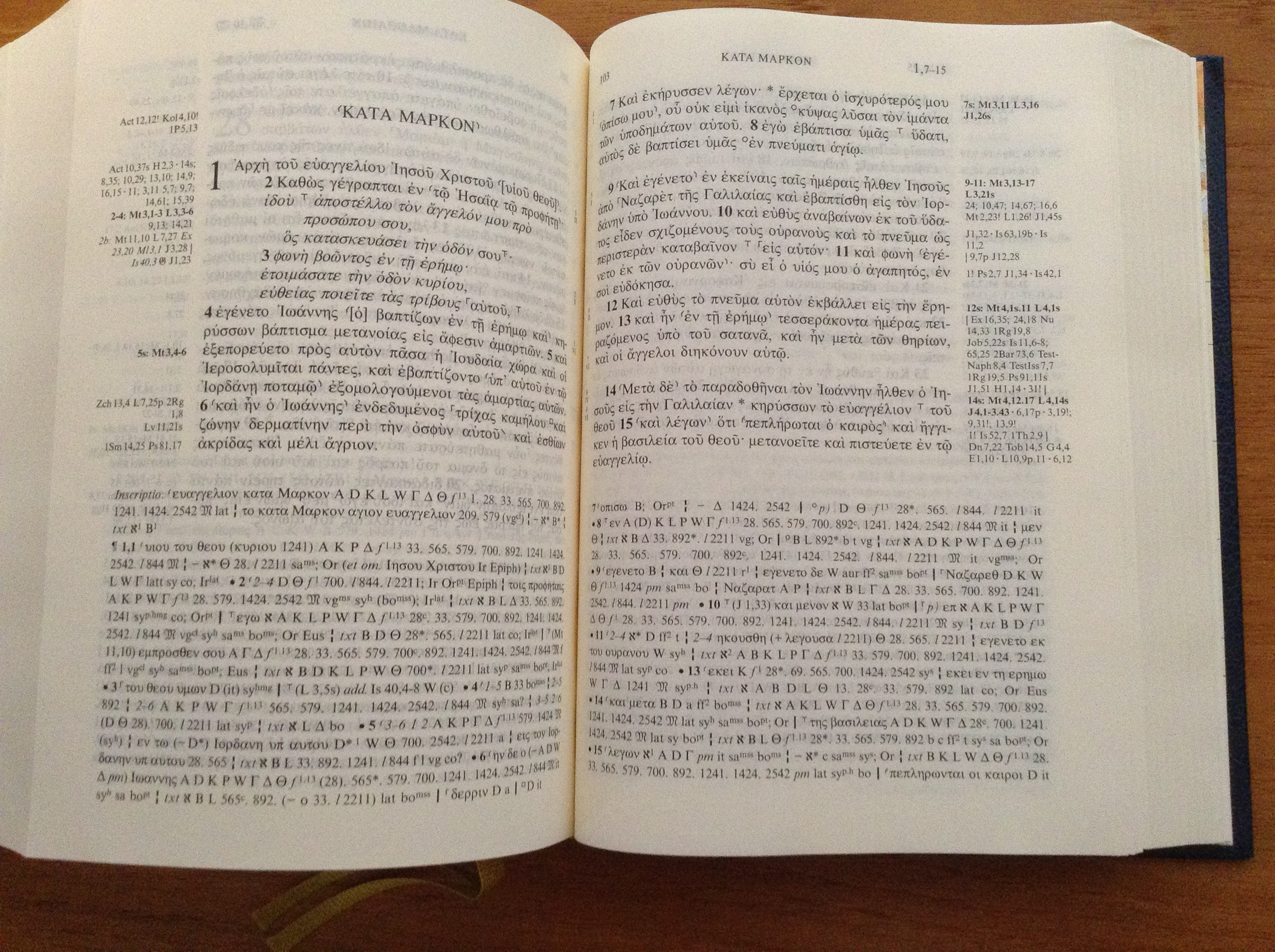 Look at that! It’s an all-Greek Bible. Just like the one Jesus carried around! Okay, not quite, but it is very good to see the Greek Septuagint and the Greek New Testament together under one cover. Augustine would be pleased: