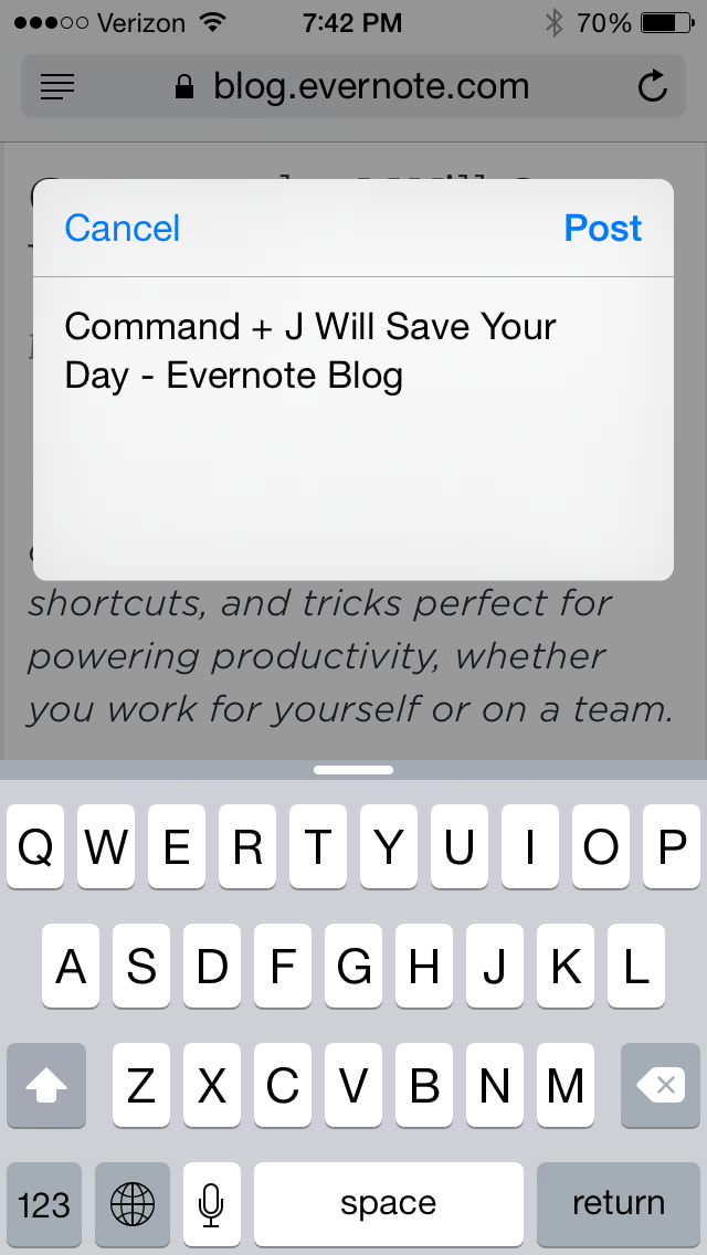 And, what is best, you can send it to any email address. This is especially helpful if you have a to-do system (like Evernote or OmniFocus) that allows you to email items directly into those apps.