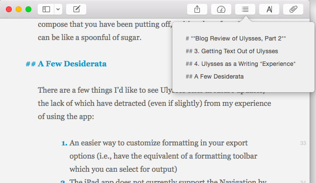 I started to review the app here; now I conclude my review of Ulysses for Mac.