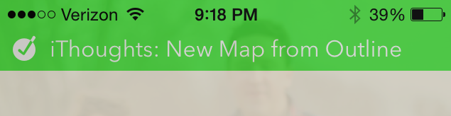 I simply tap my “Run action” key, which automatically opens my draft in iThoughts as a mind map–and does it so quickly, I can barely catch a screenshot of the dialogue!