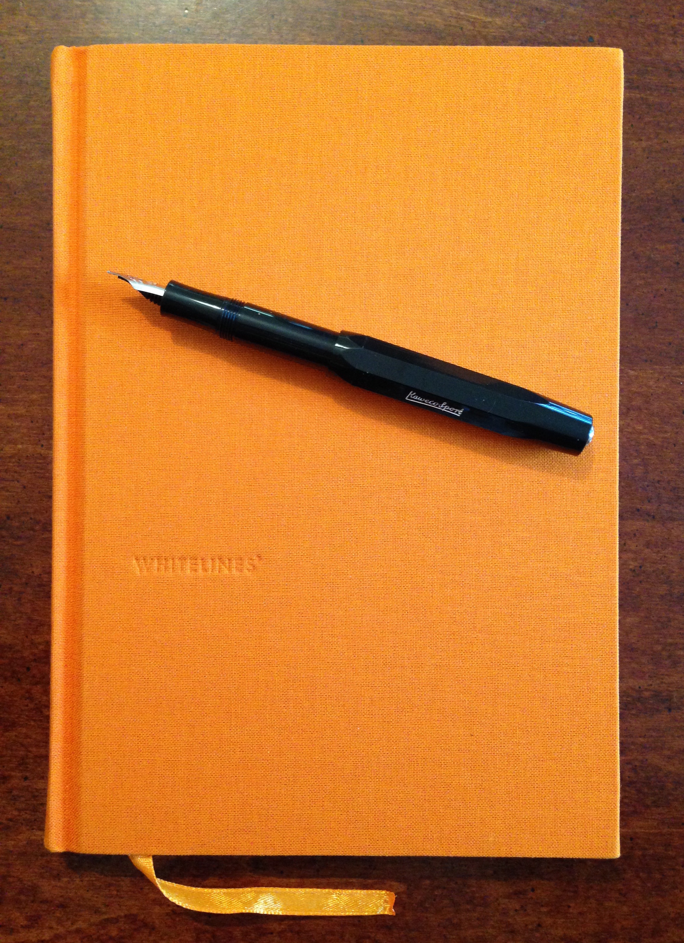 I use the Whitelines notebook as my primary journal, since it has a classic look and feel. And because this particular book is orange, I will (probably) never lose it.