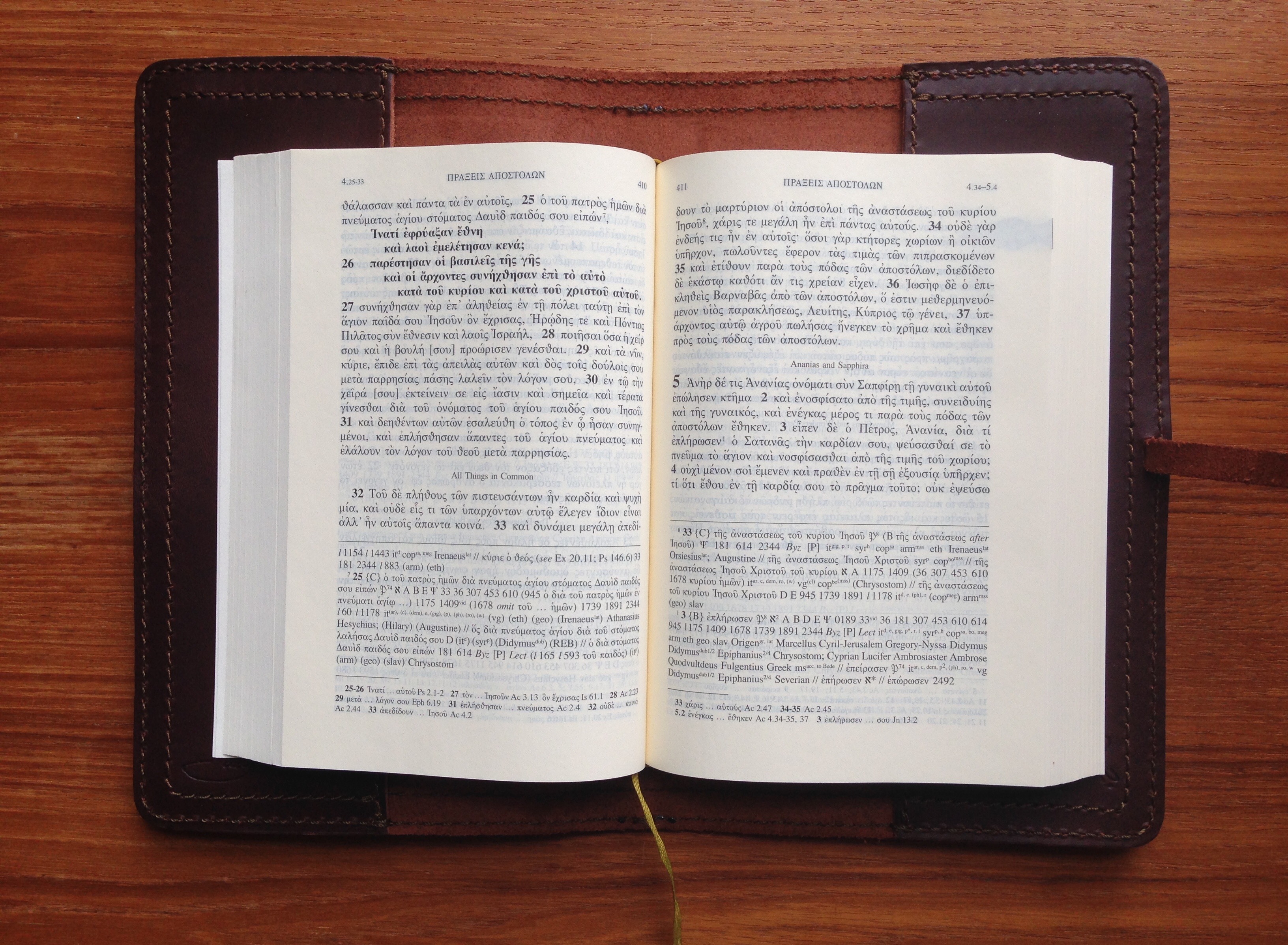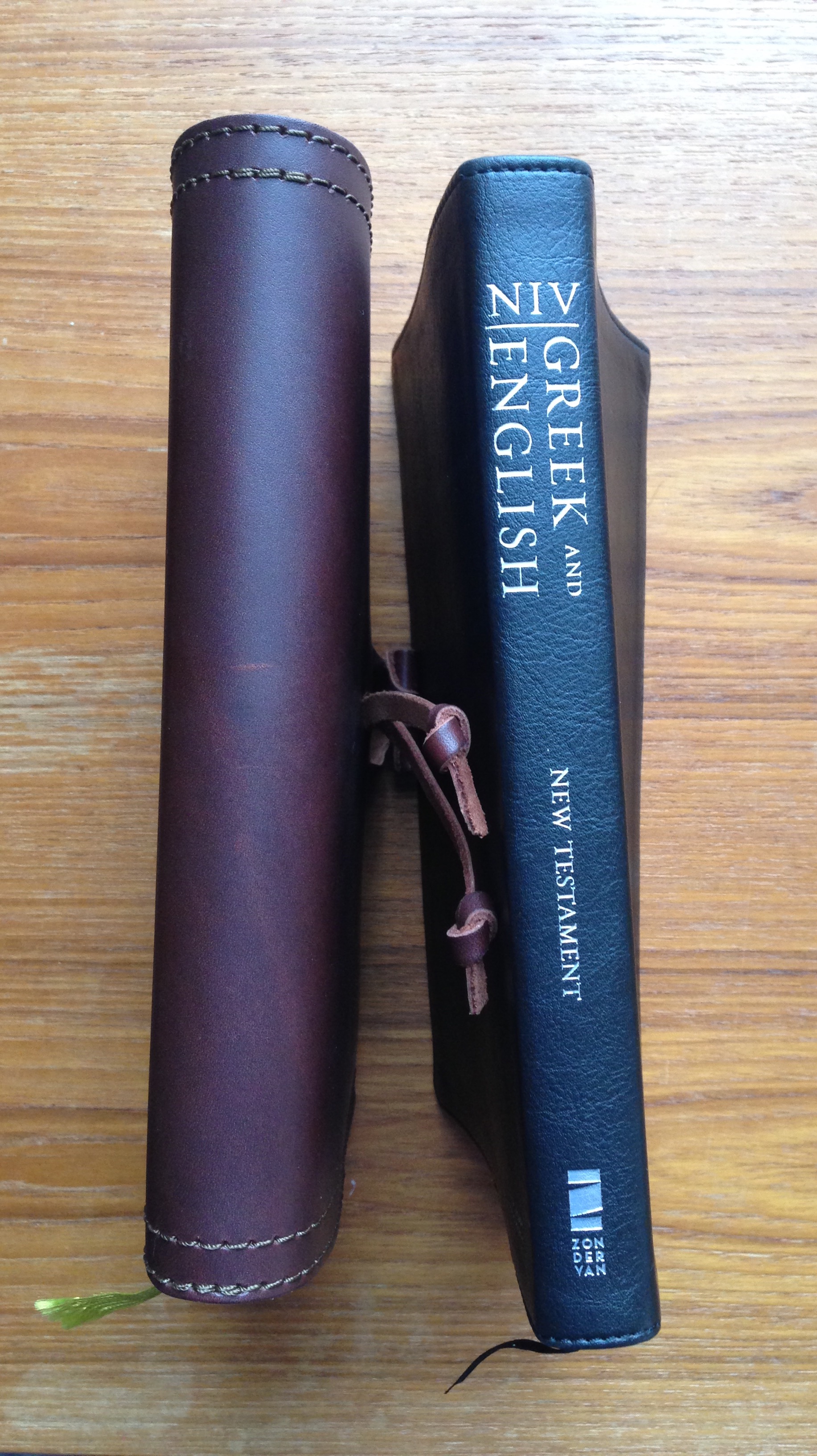 That’s the UBS5 Greek New Testament, which, as you can see, is a little short for the cover, but otherwise is a great fit.