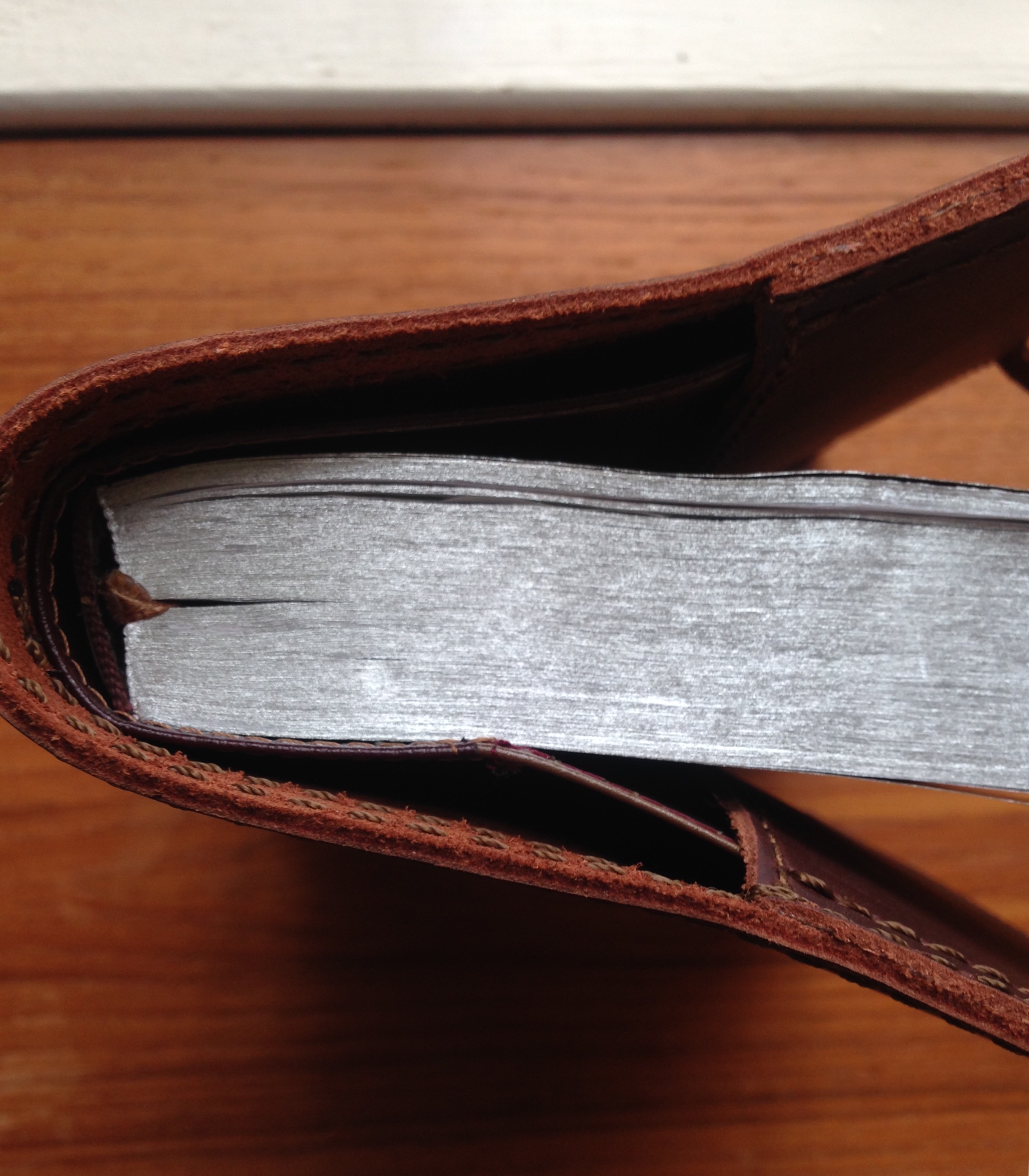 However, I think it’s fair to ask: how many people buy a leather Bible cover before buying a Bible? Usually you realize that a certain Bible has become your mainstay: through 52-week sermon series on Romans (chapters 1 and 2), through holidays and family reunions, through major life events, through years of semi-failed reading plans… and then you go get a cover worthy of the Bible.