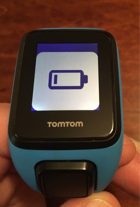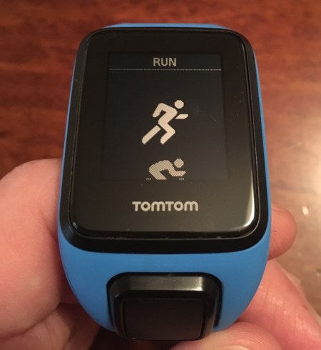 This looks awkward, but I got used to it fairly quickly. Not having a touch screen is actually really nice mid-sweaty run, where touch screens are harder to operate.