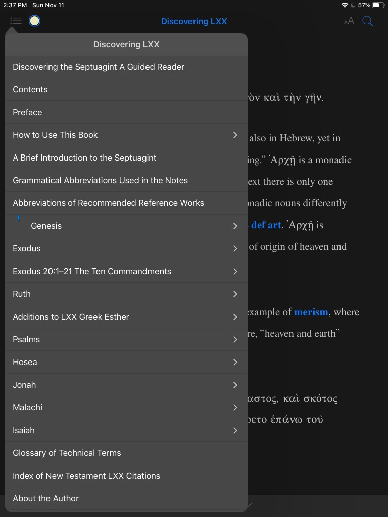 The glued binding didn’t do justice to a book like this, but that’s obviously not an issue here. Plus, portability is high, and you can read your Septuagint passages at night in dark mode on iOS!