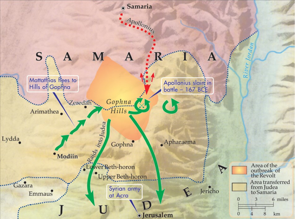 There is also this map, “The beginnings of the Hasmonean revolt, 167 BCE”: