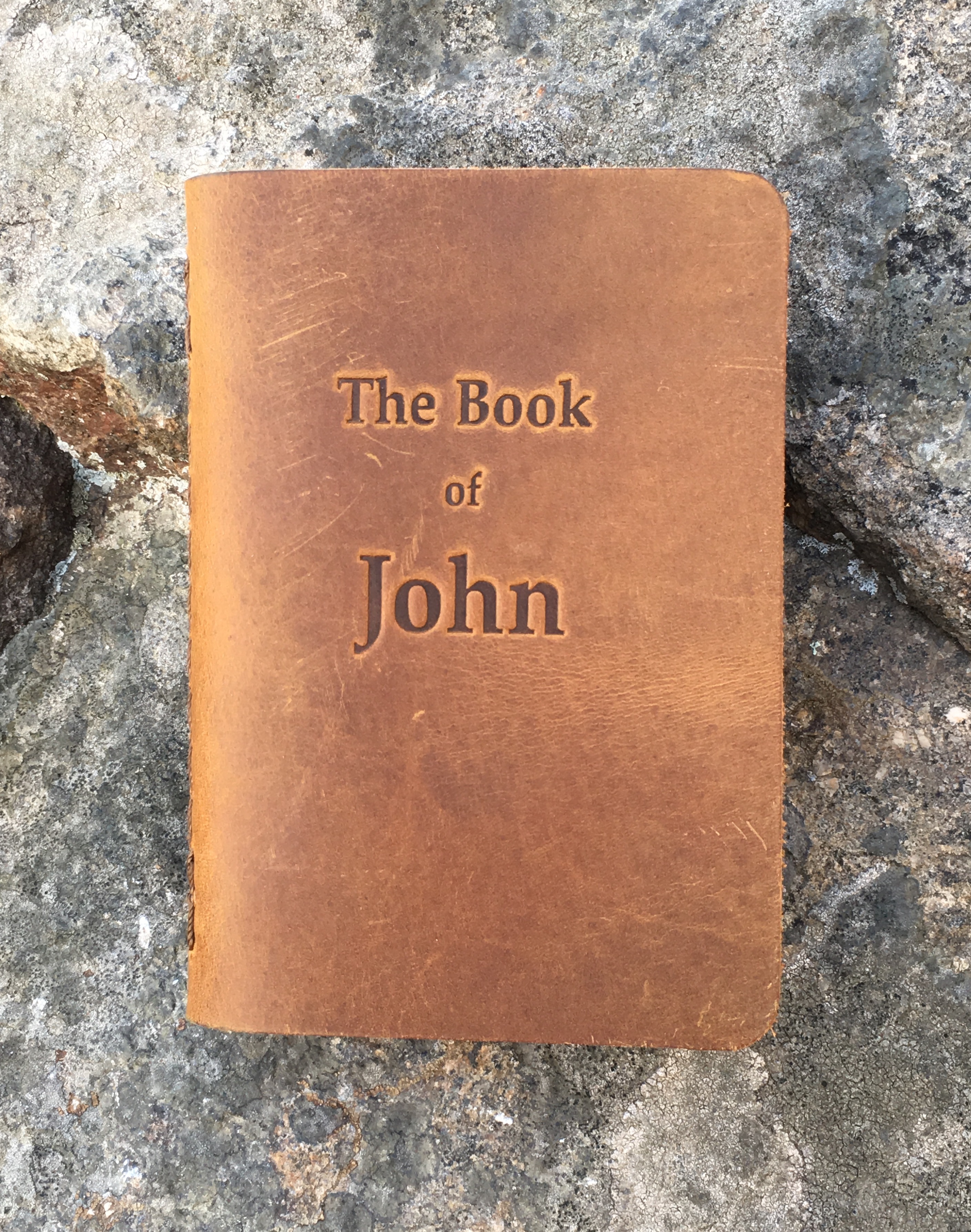 A tool won’t necessarily make me a better memorizer, but thinking it could help, I sprang for the Saddleback Leather Gospel of John Bible portion. You readers of this blog know I like good leather. You know I like pocket notebooks. And of course I like pocket notebooks with leather covers. So why not have a portable Scripture portion covered in leather?