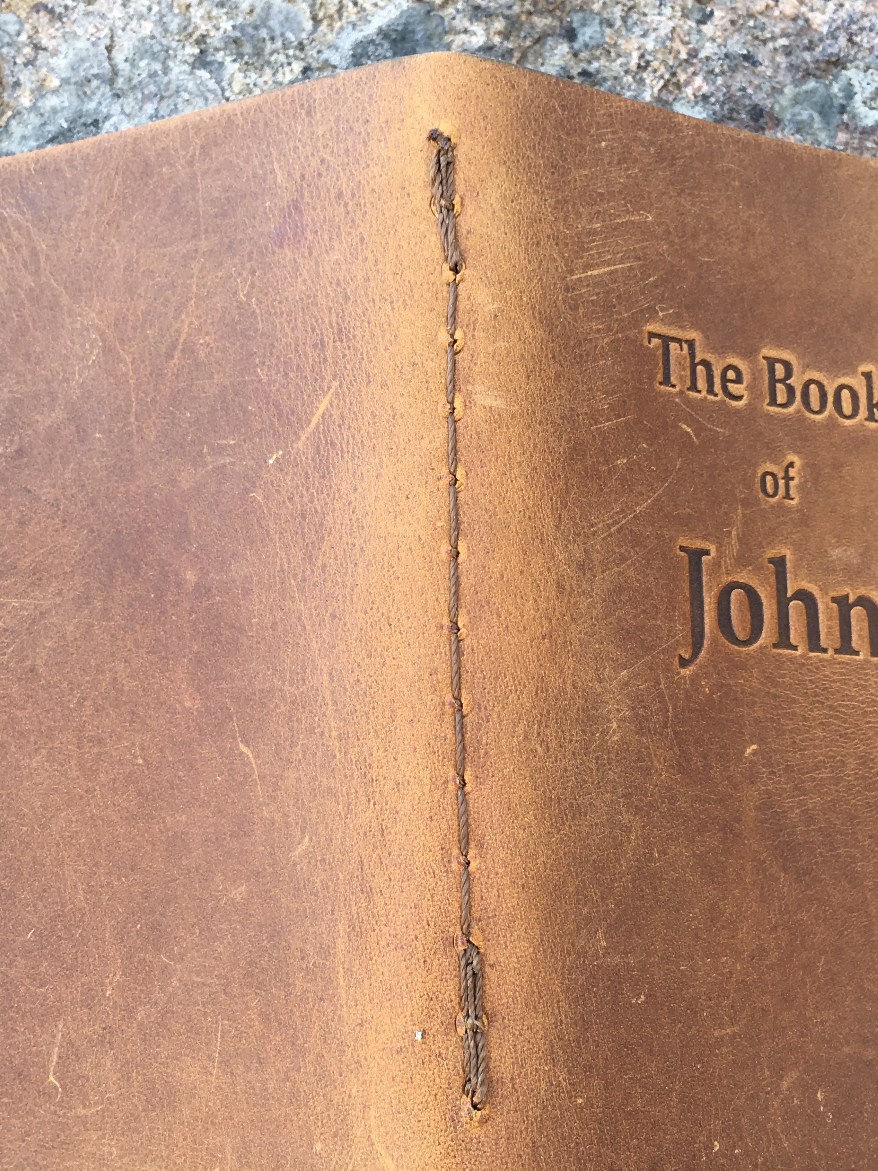 One more minor production quibble: the cover text (“The Book of John”) is ever so slightly left of center, and the branding on the back is a little off-center. These are not really noticeable (like the stitching is), and maybe it’s just that I’ve come to expect near perfection from Saddleback!
