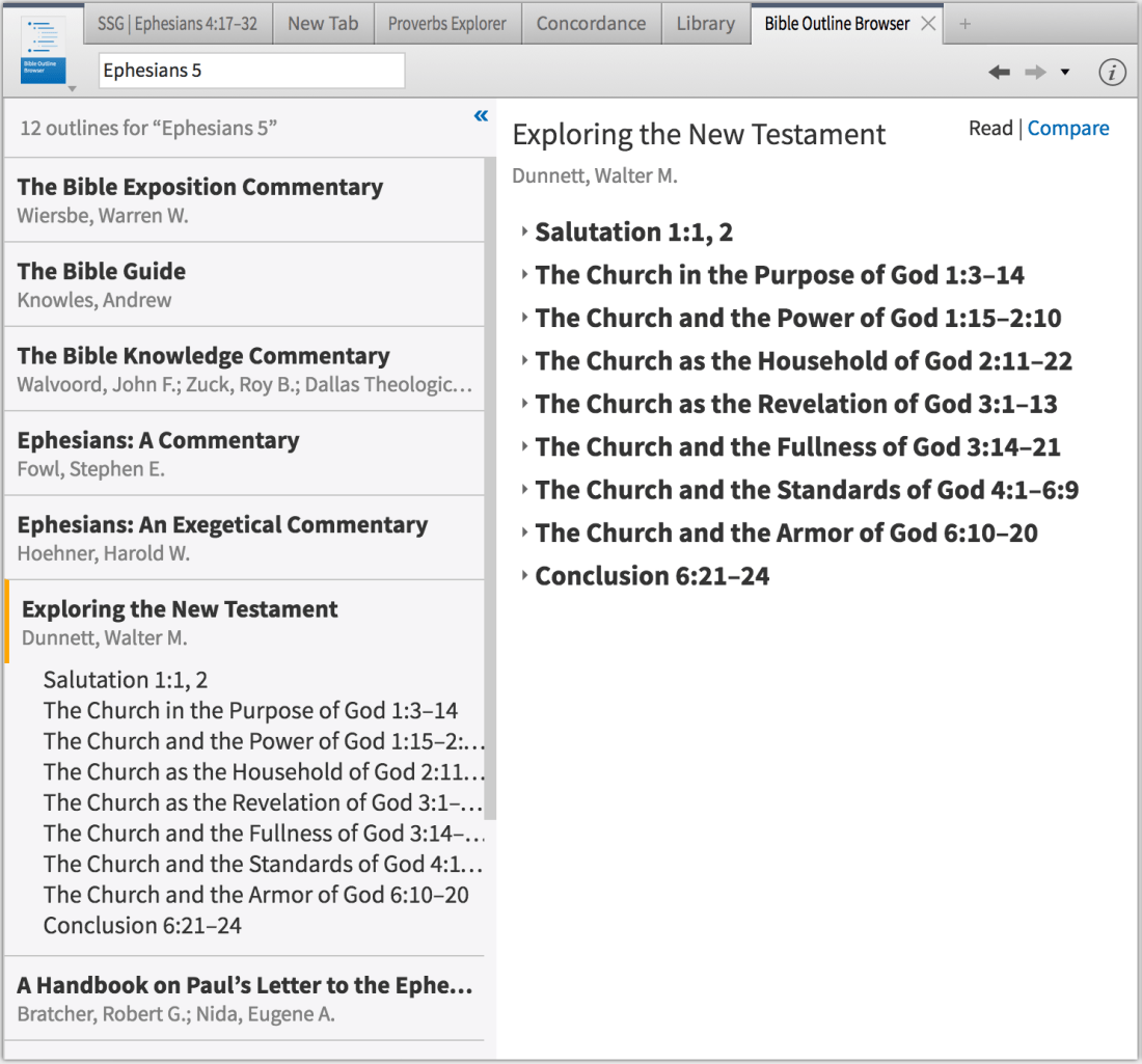 Some of those were in Logos 6, like the Bible Outline Browser, which shows you all the Bible text outlines you have in your library for the passage you’re considering.