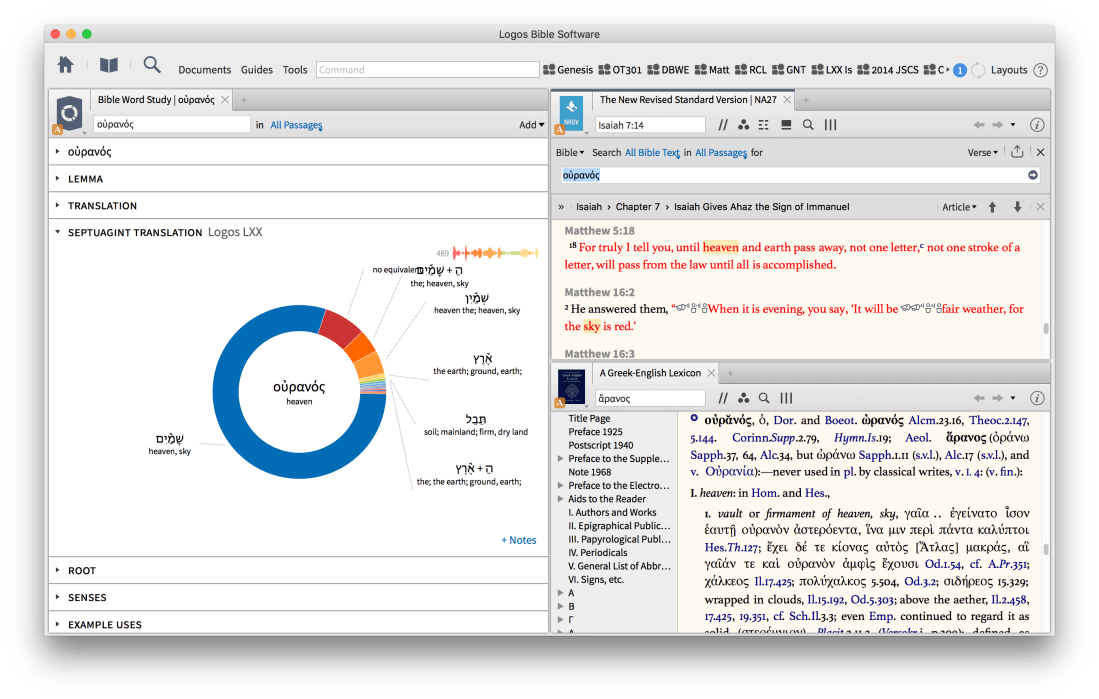 The Passage Guide has been around a while, but Logos keeps adding to it. Logos 7 features a Systematic Theologies guide, an admittedly subjective but still helpful aggregator of theology resources in your library, keyed to the verse you’re studying. You can sort it by theology subject (Christology, pneumatology, etc.) or by denomination.