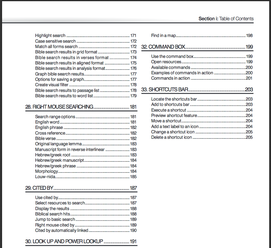 I felt at times when using the manual that the author was selling the product to the reader (“And there’s even more,” he notes on “Bible Searching,” and, “Those days are long gone,” he says about parallel printed editions of Bibles). I just chalked this up to his enthusiasm for the software, which is, indeed, an asset. (Though I still use plenty of books in print.)