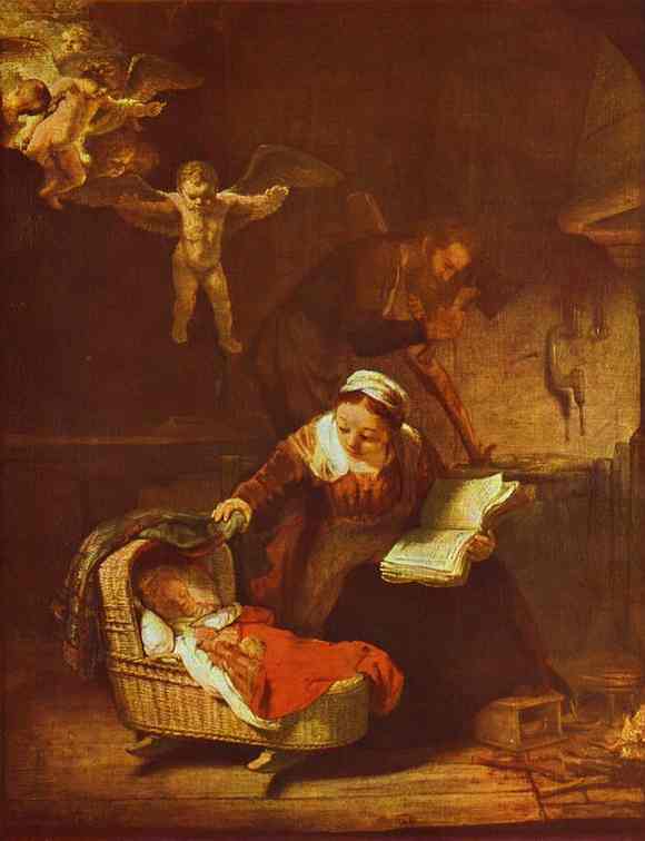 I can imagine a sermon that would begin with a description of Rembrandt’s painting and that would develop the idea of the necessary dialogue between Mary’s studying the Bible and studying the child, the Word made flesh. Like Mary, we come to understand the Word more and more fully as we oscillate between the book and the child, between the Word through words and the Word made flesh.
