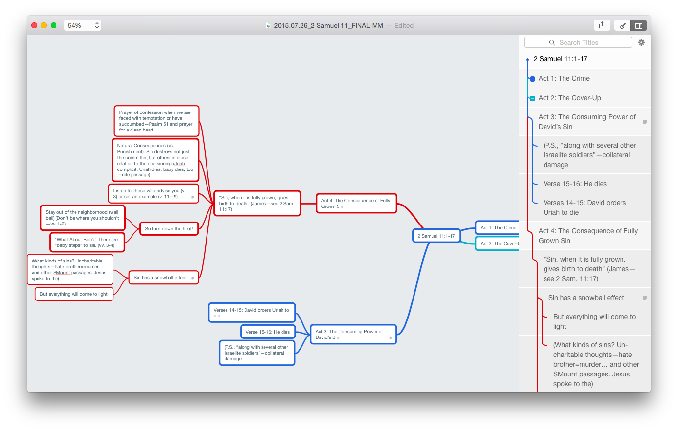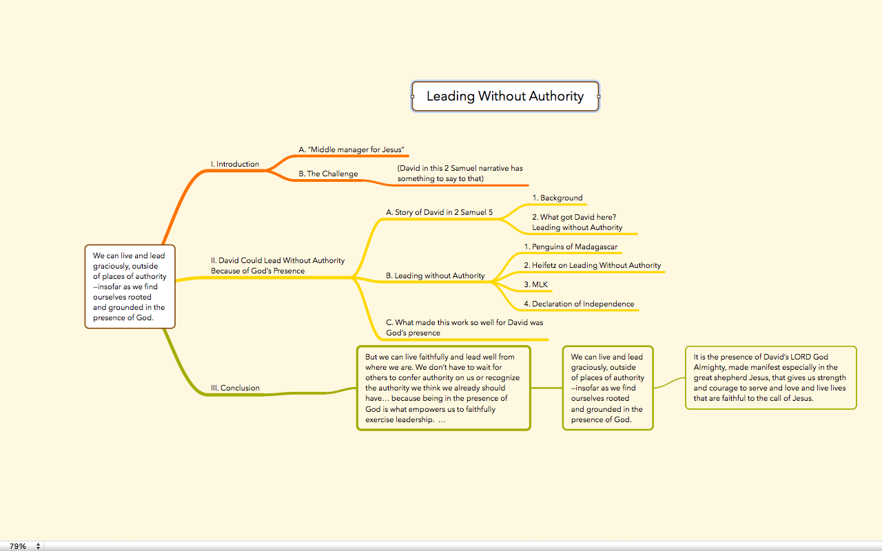 I used MindNode to map out my sermon outline this last Sunday. When I was done it looked like this: