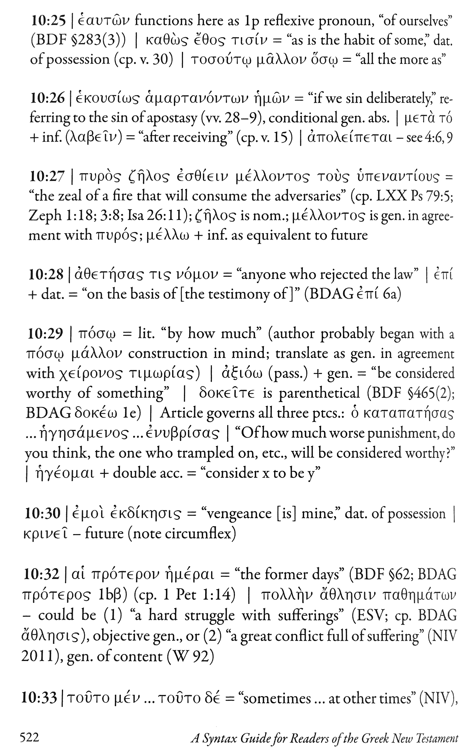 If a vocabulary word is not glossed at the bottom (i.e., you don’t know your vocabulary down to 30 occurrences), there is a concise Greek-English dictionary in the back of the Bible. Yes! Just about everything you need for Greek reading is here.