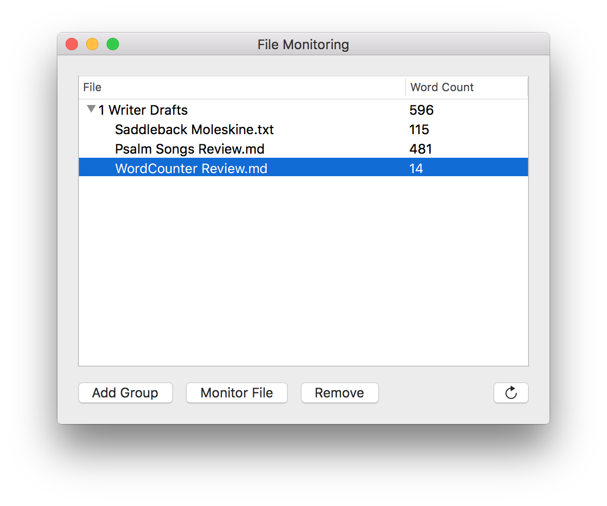 But there is also a nice additional feature of being able to track word counts on individual files. This comes in handy especially for a file you’re working on via Dropbox across multiple machines. Word Counter will track the word count for you via Dropbox, no matter what device you typed the words on.