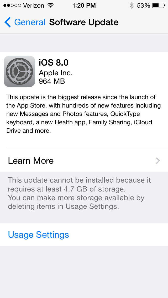 Find which app is using the most battery life – iOS 8 includes a new Settings option that allows you to view battery usage by app, monitoring the battery drain of specific apps so those that draw a lot of power can be shut down. As of beta 2, it also displays how much battery is drained when there’s no cellular coverage.